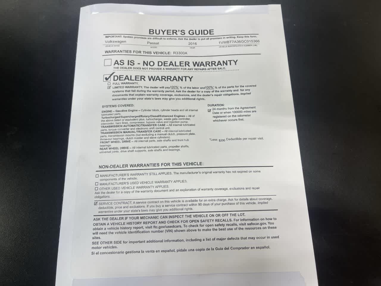 - Vehicle Name: Volkswagen Passat