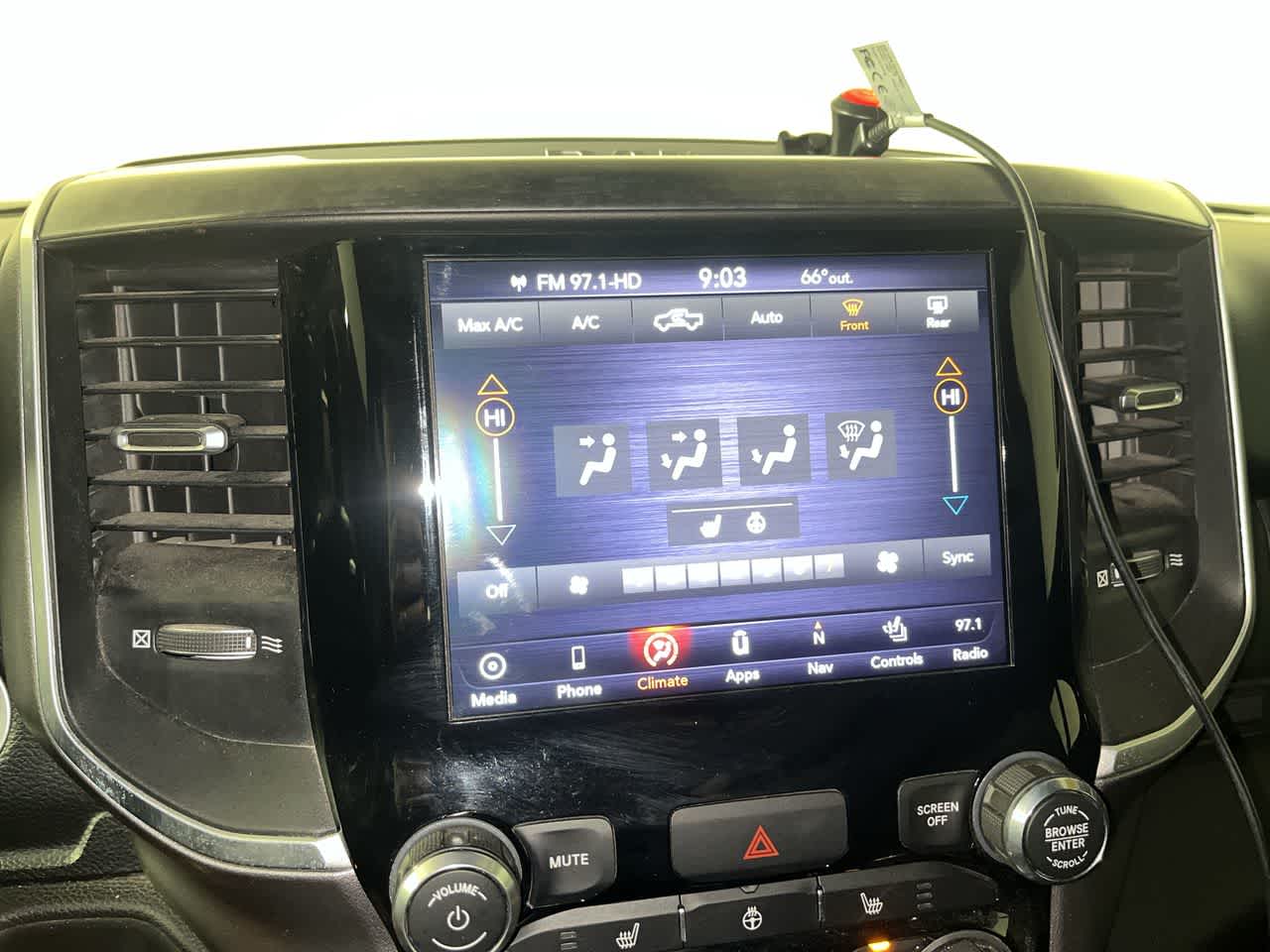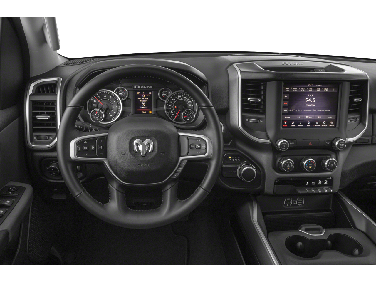 BIG HORN LEVEL 2 EQUIPMENT GROUP Radio: Uconnect 4 w/8.4 Display, Rear Window Defroster, Integrated Center Stack Radio, ParkSense Front/Rear Park Assist w/Stop, Rear View Auto Dim Mirror, Power Adjustable Pedals, Rear Power Sliding Window, Rear Dome w/On/Off Switch Lamp, Glove Box Lamp, Power 4-Way Driver Lumbar Adjust, 115V Auxiliary Rear Power Outlet, Power 8-Way Driver Seat, 2 USB Full Function/Charge Only Media Hub, Heated Front Seats, Heated Steering Wheel, 8.4 Touchscreen Display, Foam Bottle Insert (Door Trim Panel), Class IV Receiver Hitch, Dampened Tailgate, Security Alarm, Power Heated Fold Away Mirrors, Big Horn IP Badge, Remote Start System, SiriusXM Satellite Radio, 400W Inverter, Air Conditioning ATC w/Dual Zone Control, 115V Auxiliary Power Outlet, Cluster 7.0 TFT Color, WHEELS: 20 X 9 ALUMINUM CHROME CLAD, SPORT APPEARANCE PACKAGE Tires: 275/55R20 OWL All Season, Exterior Mirrors w/Supplemental Signals, Power Heated Fold-Away Mirrors, Body Color Door Handles, Exterior Mirrors Courtesy Lamps, Auto Dim Exterior Driver Mirror, Exterior Mirrors w/Memory, Grille B/Color Outline 1 Texture 2, Black Interior Accents, Power-Folding Mirrors, Body Color Front Bumper, Body Color Rear Bumper w/Step Pads, PREMIUM LIGHTING GROUP Front LED Fog Lamps, LED Reflector Headlamps, LED Taillamps, RADIO: UCONNECT 4C NAV W/8.4 DISPLAY Google Android Auto®, SiriusXM Traffic Plus, SiriusXM Satellite Radio, Disassociated Touchscreen Display, HD Radio, For Details, Visit DriveUconnect.com, Integrated Center Stack Radio, For More Info, Call 800-643-2112, 1-Yr SiriusXM Guardian Trial, Air Conditioning ATC w/Dual Zone Control, GPS Navigation, SiriusXM Travel Link, No Satellite Coverage w/HI/AK/PR/VI/GU, 8.4 Touchscreen Display, Apple CarPlay®, BLIND SPOT & CROSS PATH DETECTION, QUICK ORDER PACKAGE 23Z BIG HORN/LONE STAR Engine: 3.6L V6 24V VVT eTorque UPG I, Transmission: 8-Speed Automatic (850RE), Steering Wheel Mounted Audio Controls, TRANSMISSION: 8-SPEED AUTOMATIC (850RE) (STD), ENGINE: 3.6L V6 24V VVT ETORQUE UPG I (STD), BLACK, DELUXE CLOTH BUCKET SEATS Power 8-Way Driver Seat, Center Console Parts Module, Bucket Seats, Manual Adjust 4-Way Front Passenger Seat, Full Length Floor Console, Power 4-Way Driver Lumbar Adjust.