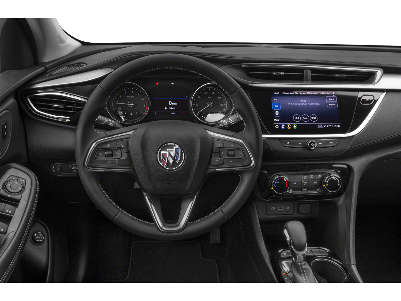 MOONROOF, COLD WEATHER COMFORT PACKAGE includes (A2X) Driver 8-way power seat adjuster, (BTV) Remote Vehicle Starter System, (KA1) Heated driver and front passenger seats and (U2K) SiriusXM Radio, REMOTE VEHICLE STARTER SYSTEM includes Remote Keyless Entry, 8" DIAGONAL BUICK INFOTAINMENT SYSTEM includes multi-touch display, AM/FM stereo, includes Bluetooth® streaming audio for music and most phones; featuring Android Auto® and Apple CarPlay® capability for compatible phones (STD), ENGINE, ECOTEC 1.3L TURBO (GM-estimated 155 hp [115 kW] @ 5,600 rpm / 174 lb-ft torque [236 Nm] @ 1,600 rpm FWD/AWD models) (STD), 9T4X, GEN 1 (STD). Buick Preferred with Dark Moon Blue Metallic exterior and Ebony with Ebony interior accents interior features a 3 Cylinder Engine with 155 HP at 5600 RPM*.