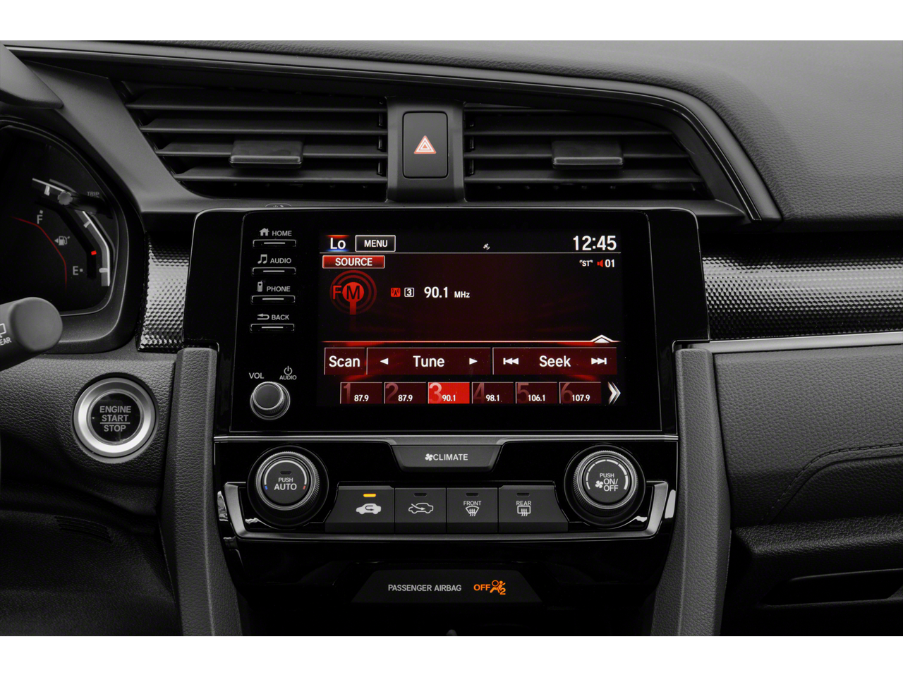- Radio: 160-Watt Audio System -inc: 4 speakers, 7-inch display w/high-resolution electrostatic touch-screen, Bluetooth® HandsFreeLink, Bluetooth® streaming audio, Radio Data System (RDS), speed-sensitive volume compensation (SVC), 1.0-amp USB audio interface port in front console, knob and hard keys for primary controls and customizable feature settings, HondaLink, Apple CarPlay integration, Android Auto integration, illuminated steering wheel-mounted controls and fin-type roof-mounted antenna