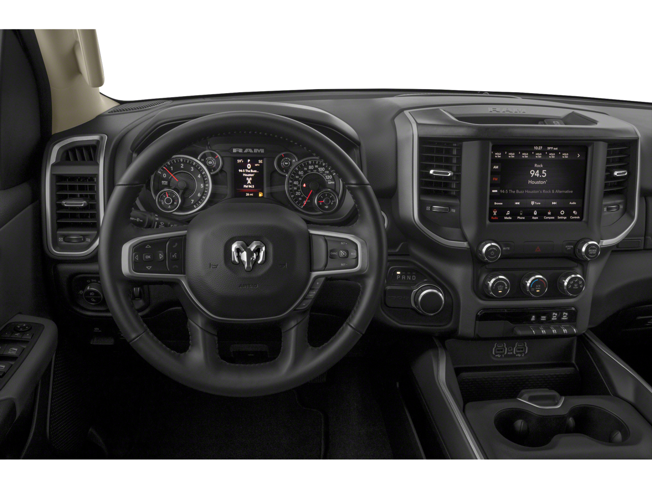 ENGINE: 5.7L V8 HEMI MDS VVT Active Noise Control System, 180 Amp Alternator, Heavy Duty Engine Cooling, GVWR: 7,100 lbs, Dual Rear Exhaust w/Bright Tips, HEMI Badge, 26 Gallon Fuel Tank, WHEELS: 20 X 9 ALUMINUM CHROME CLAD (WRK), BIG HORN LEVEL 1 EQUIPMENT GROUP SiriusXM Radio Service, Radio: Uconnect 4 w/8.4 Display, SiriusXM Satellite Radio, Rear Window Defroster, Rear View Auto Dim Mirror, Power Adjustable Pedals, For More Info, Call 800-643-2112, Rear Power Sliding Window, Exterior Mirrors w/Supplemental Signals, Rear Dome w/On/Off Switch Lamp, Exterior Mirrors Courtesy Lamps, Glove Box Lamp, Power 4-Way Driver Lumbar Adjust, Power 8-Way Driver Seat, Auto Dim Exterior Driver Mirror, Universal Garage Door Opener, Cluster 3.5 TFT Color Display, Power-Folding Mirrors, Foam Bottle Insert (Door Trim Panel), Class IV Receiver Hitch, Black Premium Power Mirrors, Sun Visors w/Illuminated Vanity Mirrors, Big Horn IP Badge, BLACK, DELUXE CLOTH BUCKET SEATS Power 8-Way Driver Seat, Center Console Parts Module, Bucket Seats, Full Length Floor Console, Power 4-Way Driver Lumbar Adjust, TRANSMISSION: 8-SPEED AUTOMATIC (8HP75). Ram Big Horn with Diamond Black Crystal Pearlcoat exterior and Black interior features a 8 Cylinder Engine with 305 HP at 6400 RPM*.