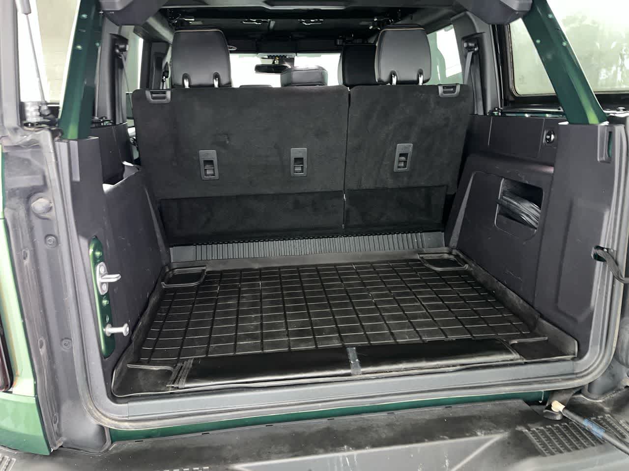 SASQUATCH PACKAGE Wheels: 17 Black High Gloss-Painted Aluminum, warm alloy beauty ring and beadlock capable wheels, High Clearance Fender Flares, High Clearance Suspension, 4.7 Final Drive Ratio, Tires: LT315/70R17 Mud-Terrain, Position-Sensitive Bilstein Shock Absorbers, EQUIPMENT GROUP 333A HIGH PACKAGE Rear Parking Sensors, Power Outlet - Back Side of Center Floor Console, 12 LCD Capacitive Touchscreen w/Swipe Capability, Front Row Heated Seats, Auto-Dimming Interior Rearview Mirror, Dr & Pass Illuminated Sliding Visor Vanity Mirrors, Additional Sound Deadening, Information on Demand Panel, Dual-Zone Electronic Automatic Temperature Control, air conditioning, Ford Co-Pilot360, Enables compatibility w/FordPass performance app w/off-road navigation, Auto High-Beam Headlamps, Pre-Collision Assist w/Automatic Emergency Braking, pedestrian detection, forward collision warning and dynamic brake support, Blind Spot Information System (BLIS), Cross-Traffic Alert, Rear View Camera, backup assist grid lines, Lane-Keeping System, Lane-Keeping Alert, Lane-Keeping, BLACK ONYX, LEATHER-TRIMMED/VINYL BUCKET SEATS 10-way power driver seat, 8-way front passenger seat, second row armrest w/2 beverage holders and front driver/passenger seat back MOLLE strap system, Carpet flooring replaces the standard rubberized flooring, ENGINE: 2.7L ECOBOOST V6 electric brake boost, GVWR: 6,180 lbs, CARBONIZED GRAY MOLDED-IN-COLOR HARD TOP Rear-Window Defroster & Washer, Front Row Top Panels Storage Bag, For on-vehicle storage, TRANSMISSION: 10-SPEED AUTOMATIC 4.46 Axle Ratio. Ford Badlands with Eruption Green exterior and Black Onyx interior features a V6 Cylinder Engine with 315 HP at 5500 RPM*.