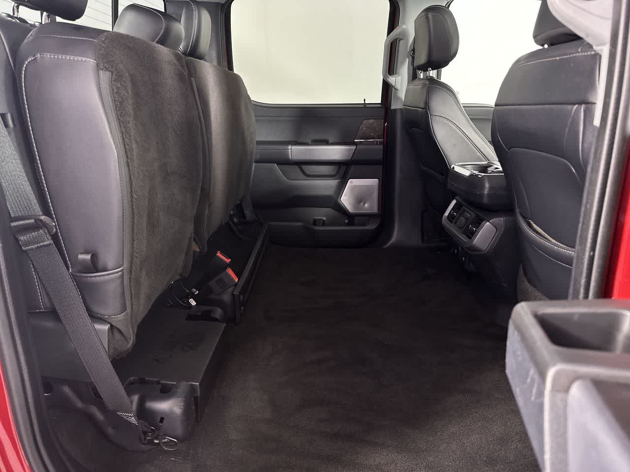 EQUIPMENT GROUP 502A HIGH Rain-Sensing Wipers, Power Tilt/Telescoping Steering Column w/Memory, Onboard 400W Outlet, 2nd outlet in the console and an additional outlet in the bed, Lariat Chrome Appearance Package, 2 chrome front tow hooks, Chrome Single-Tip Exhaust, 6 Bright Polished Running Board, Chrome Door & Tailgate Handles w/Body-Color Bezel, Wheels: 18 Chrome-Like PVD, Chrome 2-Bar Grille w/4 Minor Bars, painted silver surround and background mesh, Chrome Skull Caps on Exterior Mirrors, Radio: B&O Sound System by Bang & Olufsen, HD radio and 8 speakers including subwoofer, 2nd Row Heated Seats, Power Glass Sideview Mirr w/Chrome Skull Caps, power-folding, heat, turn signal, memory, auto-dimming feature (drivers side) and high-intensity LED security approach lamps, Universal, ENGINE: 3.5L POWERBOOST FULL-HYBRID V6 GVWR: 7,350 lbs Payload Package, Electronic Locking w/3.73 Axle Ratio, BED UTILITY PACKAGE BoxLink, 4 premium locking cleats, LED Box Lighting, Tailgate Step w/Tailgate Work Surface, Power Tailgate, FORD CO-PILOT360 ASSIST 2.0 Evasive Steering Assist, Intelligent Adaptive Cruise Control w/Stop & Go, lane centering, Speed Sign Recognition, Connected Built-In Navigation, Navigation services require SYNC4 and FordPass Connect (optional on select vehicles), complimentary connect service and the FordPass app (see FordPass Terms for details), Eligible vehicles receive a complimentary 90-day trial of navigation services that begins on the new vehicle warranty start date, Customers must unlock the navigation service trial by activating the eligible vehicle w/a FordPass member account, If not subscribed by the end of the complimentary period, the navigation service will terminate, Connected service and features depend on compatible AT&T network availability, Evolving technology/cellular. Ford LARIAT with Rapid Red Metallic Tinted Clearcoat exterior and Black interior features a V6 Cylinder Engine with 325 HP at 5000 RPM*.