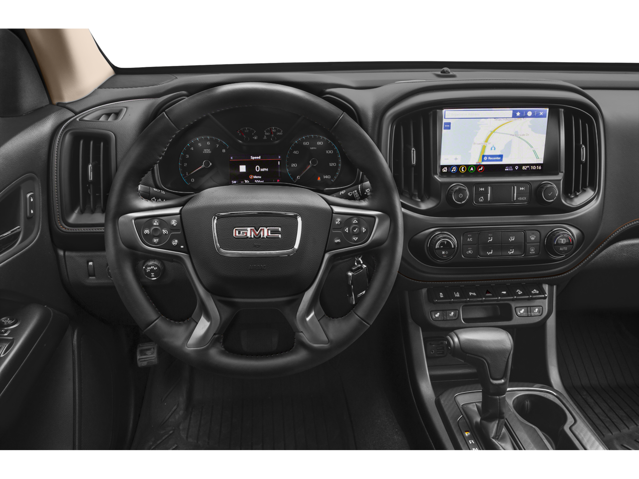 GMC INFOTAINMENT SYSTEM WITH 8 DIAGONAL COLOR TOUCH-SCREEN AM/FM stereo with seek-and-scan and digital clock, includes Bluetooth® streaming audio for music and select phones; featuring Android Auto® and Apple CarPlay® capability for compatible phones (STD), 3.6L DI DOHC V6 VVT (308 hp [230.0 kW] @ 6800 rpm, 275 lb-ft of torque [373 N-m] @ 4000 rpm) (STD), 8-SPEED AUTOMATIC (STD). GMC 4WD AT4 w/Cloth with Onyx Black exterior and Jet Black/Kalahari interior features a V6 Cylinder Engine with 308 HP at 6800 RPM*.