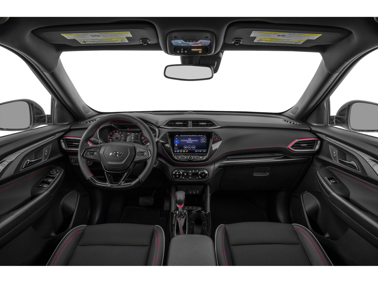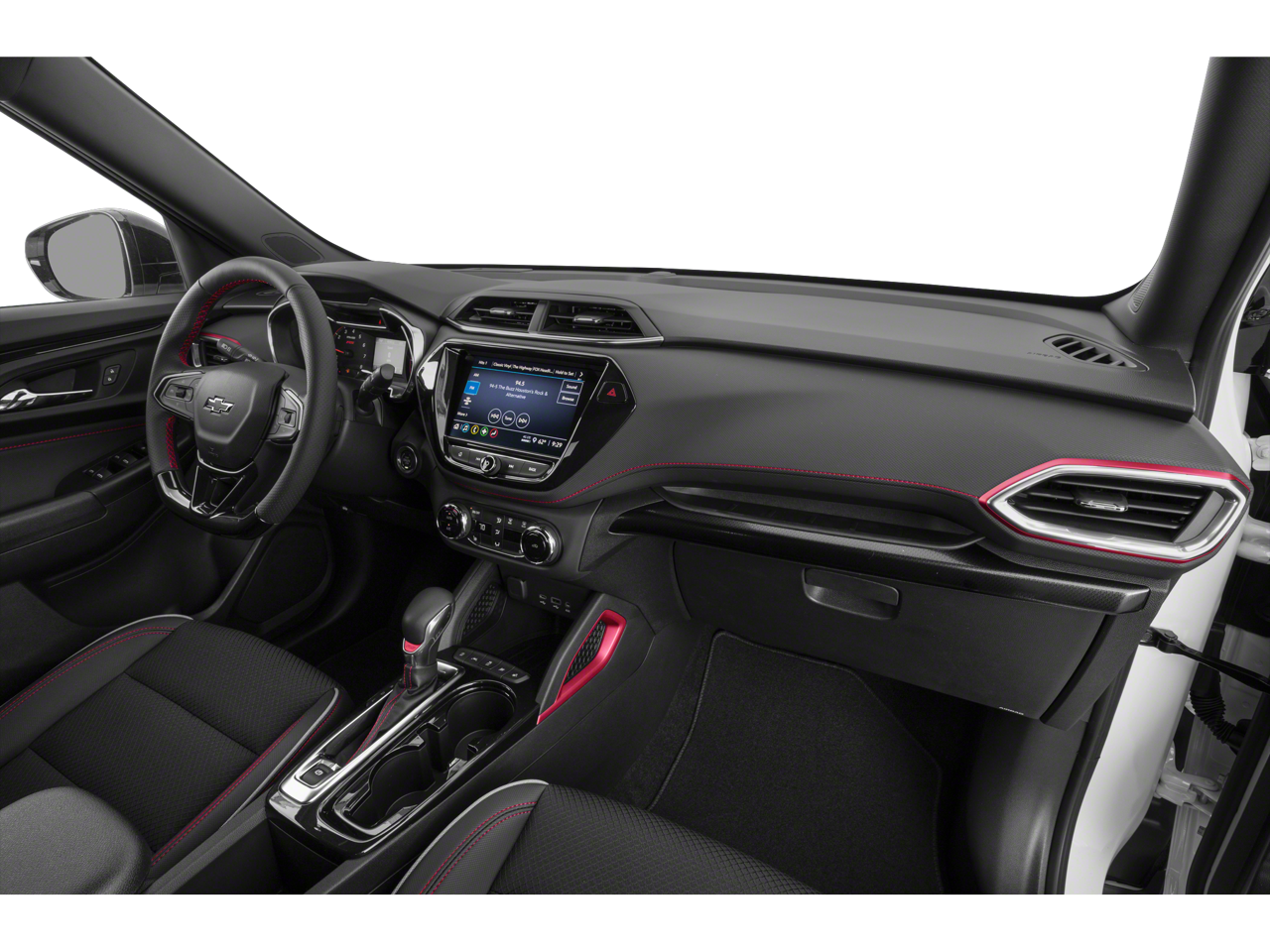 CONVENIENCE PACKAGE includes (C68) automatic climate control air conditioning, (UIJ) 8" diagonal color touchscreen display, (USS) one type-A and one type-C charging only USB ports, (KI6) 120-volt power outlet, (DD8) inside rearview auto-dimming mirror and (DMS) driver and front passenger illuminated vanity mirrors, covered, sliding visors, CONFIDENCE II PACKAGE includes (UD7) Rear Park Assist Beginning with start of production through November 28, 2022, vehicles will be forced to include (00Y) Not Equipped with Rear Park Assist, which removes Rear Park Assist. See dealer for details or the window label for the features on a specific vehicle. Beginning December 26, 2022, certain vehicles will be forced to include (060) Not Equipped with Rear Park Assist, which removes Rear Park Assist. Does not include later dealer retrofit. See dealer for details or the window label for the features on a specific vehicle.), AUDIO SYSTEM, CHEVROLET INFOTAINMENT 3 SYSTEM 7" diagonal color touchscreen, AM/FM stereo. Additional features for compatible phones include: Bluetooth® audio streaming for 2 active devices, voice command pass-through to phone, Apple CarPlay® and Android Auto® capable. (8" screen when (ZL3) Convenience Package and (ZL5) Driver Confidence Package are ordered.) (STD), ECOTEC 1.3L I3 TURBO DOHC SIDI WITH VARIABLE VALVE TIMING (VVT) (155 hp [115 kW] @ 5600 rpm, 174 lb-ft torque [236 N-m] @ 1600 rpm) (STD), TRANSMISSION, CONTINUOUSLY VARIABLE (CVT) (STD). Chevrolet RS with STERLING GRAY METALLIC exterior and JET BLACK W/ RED ACCENTS interior features a 3 Cylinder Engine with 155 HP at 5600 RPM*.
