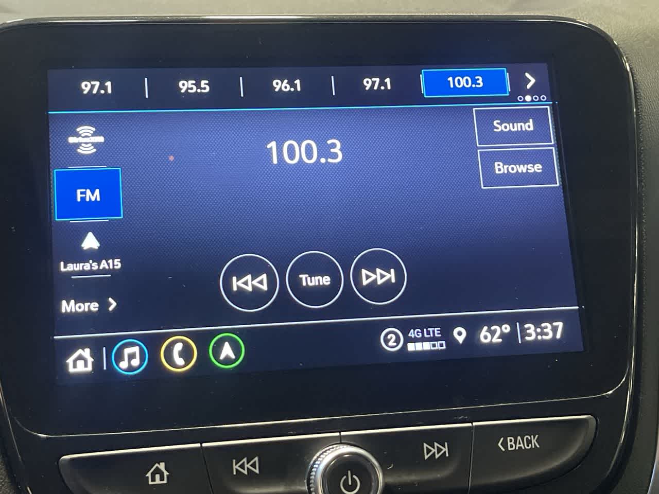 - Audio system, Chevrolet Infotainment 3 Plus system, 8" diagonal HD color touchscreen AM/FM stereo, Bluetooth® audio streaming for 2 active devices, Apple CarPlay and Android Auto capable, voice recognition, in-vehicle apps, cloud connected personalization for select infotainment and vehicle settings. Subscription required for enhanced and connected services after trial period.