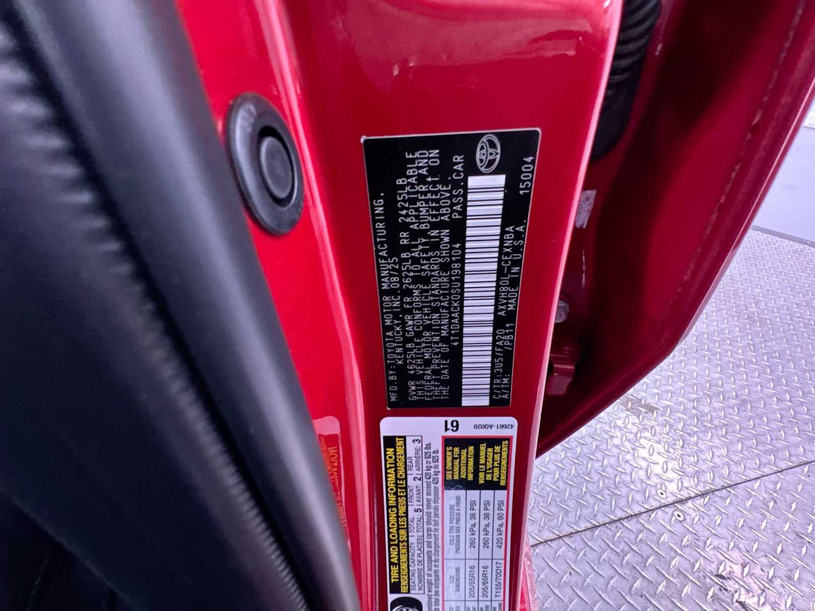 Toyota LE with Supersonic Red exterior and Black interior features a 4 Cylinder Engine with 225 HP at 6000 RPM*.
